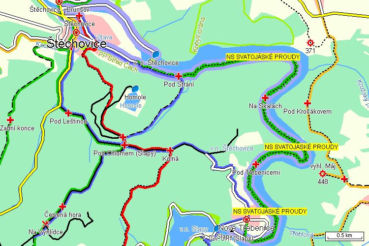 Naučná stezka Svatojánské proudy vede vysoko nad skalnatým údolím řeky Vltavy i romantickým kaňonem. Svatojánské proudy byly v minulosti vyhledávány prvními vodáky, kteří si v okolí řeky stavěli příbytky i sruby. Tímto způsobem vznikla první trampská osada Ztracenka jinak také Ztracená naděje. Se stavbou Štěchovické přehrady došlo k zatopení celého údolí i s osadami. Ale i tak nad řekou trampové roku 1889 vybudovali první turistickou cestu u nás, kterou si můžete projít i dnes.