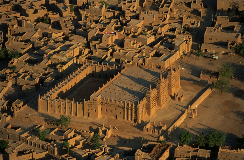 Mešita je stará více než 100 let a jedná se o největší cihelnou stavbu světa, která je však v tomto případě vytvořená z bláta. V minulosti byla zařazena na seznam UNESCO. V dnešní době je však pro turisty uzavřená.
